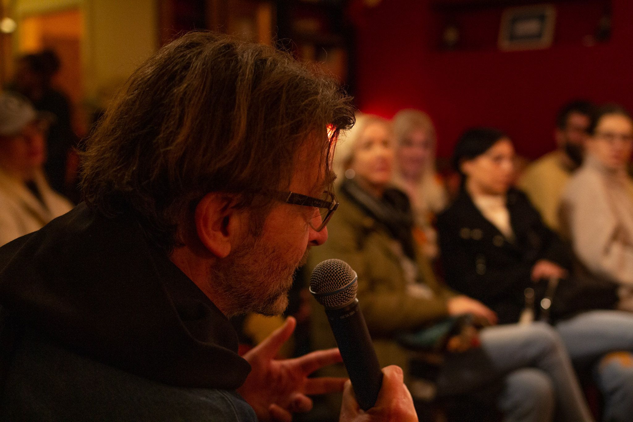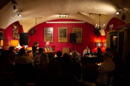 Pogovor je vodil novinar, igralec režiser in televizijski voditelj Toni Cahunek.